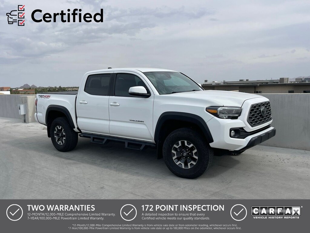 4 Wheel Drive, Tacoma TRD Offroad V6, 4D Double Cab, 3.5L V6, 4WD, Ice Cap, 120V/400W Deck Mounted AC Power, ABS brakes, Alloy wheels, Black Overfenders, Blind Spot Monitor w/Rear Cross Traffic Alert, Electronic Stability Control, Engine Immobilizer, Front dual zone A/C, Heated door mirrors, Illuminated entry, Low tire pressure warning, Mesh Front Grille, Power Sliding Rear Window w/Privacy Glass, Rear Parking Assist Sonar, Remote keyless entry, Technology Package, Traction control, TRD Off Road Package.