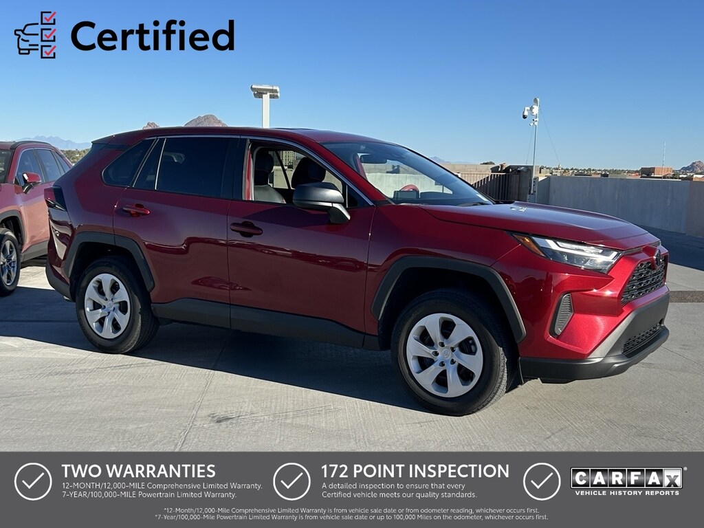 Apple Car Play, Bluetooth, Back Up Camera, Adaptive Cruise Control, Lane Departure Alert, RAV4 LE, 4D Sport Utility, 2.5L 4-Cylinder DOHC Dual VVT-i, Ruby Flare Pearl, Black w/Fabric Seat Trim.