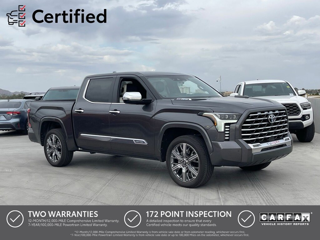 This vehicle has been meticulously inspected and certified to ensure it meets the highest standards of quality and reliability. With its impressive performance, exceptional features, and the confidence of Toyota's renowned reputation, the 2024 Tundra Hybrid Capstone is a compelling choice for discerning truck enthusiasts seeking the perfect blend of capability, efficiency, and sophistication.