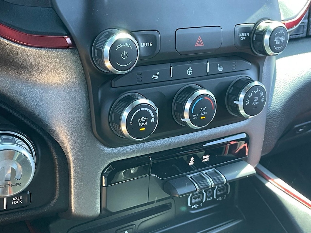 For added comfort and convenience, this Rebel is equipped with heated front seats and a heated steering wheel, ensuring you stay warm and cozy even on the coldest days. The power-adjustable pedals and power-folding mirrors add to the vehicle's versatility, while the universal garage door opener and auto-dimming rearview mirror provide added functionality and safety.