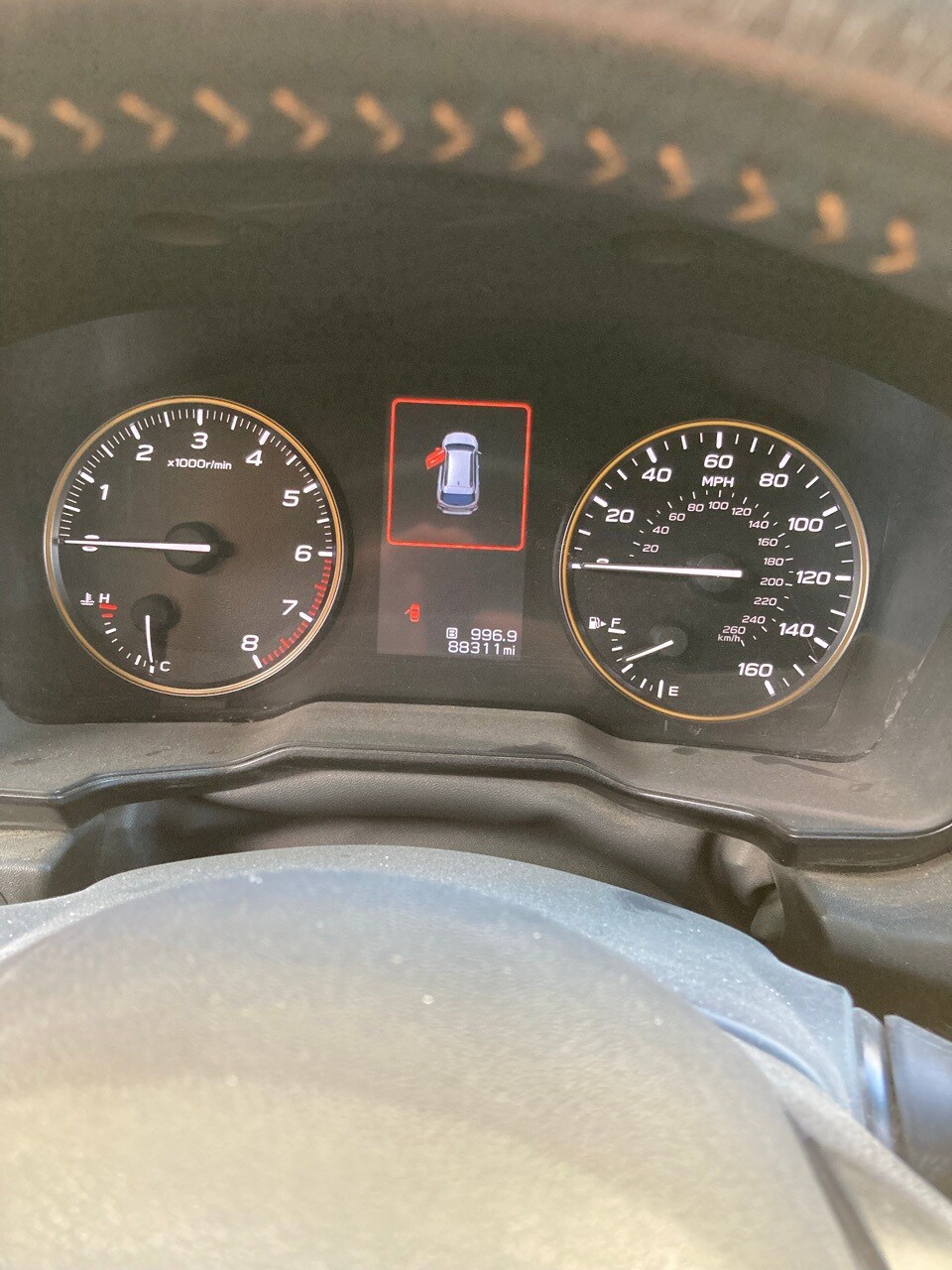 - Lane departure: EyeSight Lane Keep Assist active