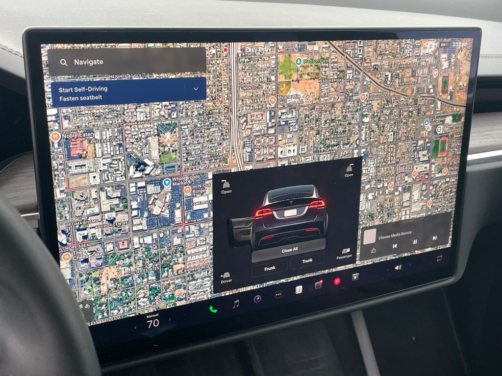 Model X Standard Range, 4D Sport Utility, Electric Motor, AWD, ABS brakes, Active Cruise Control, Alloy wheels, Compass, Electronic Stability Control, Emergency communication system, Front dual zone A/C, Heated door mirrors, Heated front seats, Heated rear seats, Illuminated entry, Low tire pressure warning, Navigation System, Power Liftgate, Remote keyless entry, Traction control.