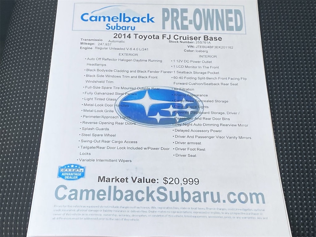 Conquer the Road with the 2014 Toyota FJ Cruiser: A Rugged Companion for the Adventurous Spirit in Iconic Iceberg Finish