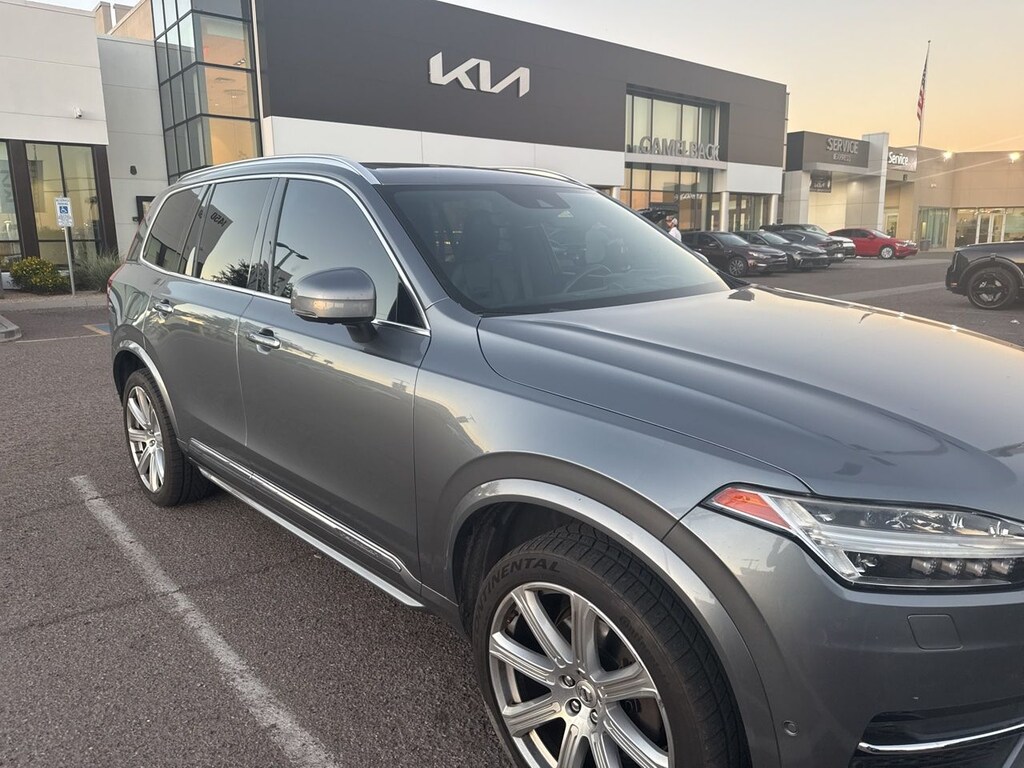 Stay connected and in control with a built-in navigation system, Bluetooth integration, WiFi hotspot, and hands-free power liftgate. Advanced features like rain-sensing wipers, LED headlights with auto-leveling, and a backup camera enhance convenience and visibility. Finished in sleek Gray Metallic and riding on aluminum performance tires, this Volvo XC90 T6 Inscription combines style, safety, and sophistication for those who demand the best.
